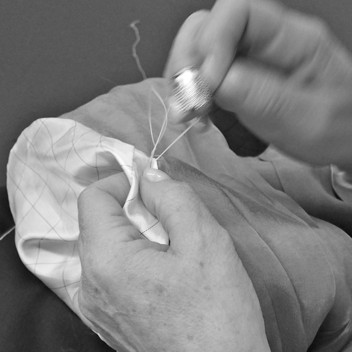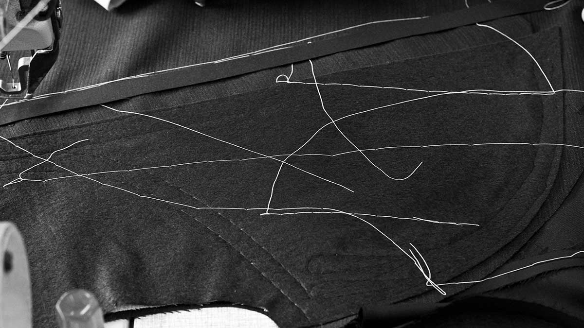 Il faut 345 minutes de travail pour réaliser une veste de costume sur mesure, soit deux fois plus que pour un modèle standard. La noblesse des tissus, la toile à l’intérieur, les 130 points cousus à la main sur l’emmanchure et le repassage soigné la rendent unique par la façon naturelle dont elle épouse les différentes morphologies féminines.