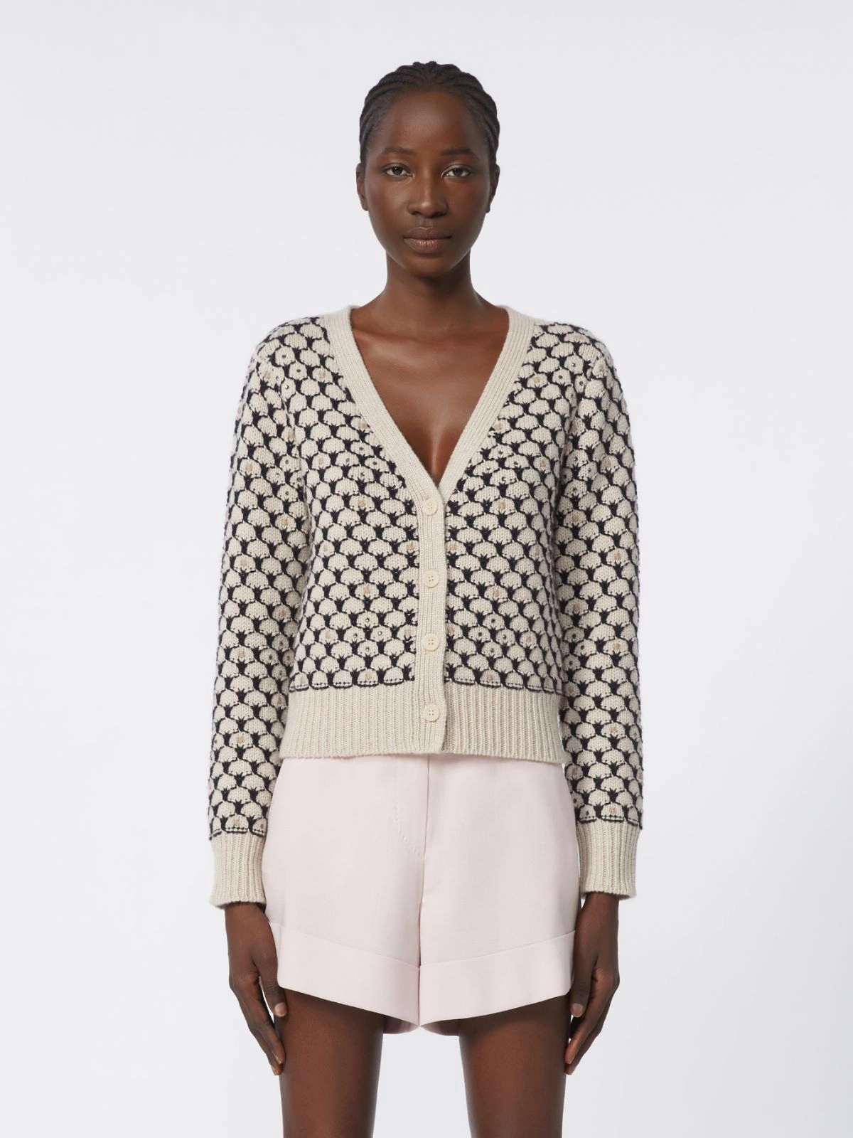 Cardigan en laine et cachemire à motif - Beige